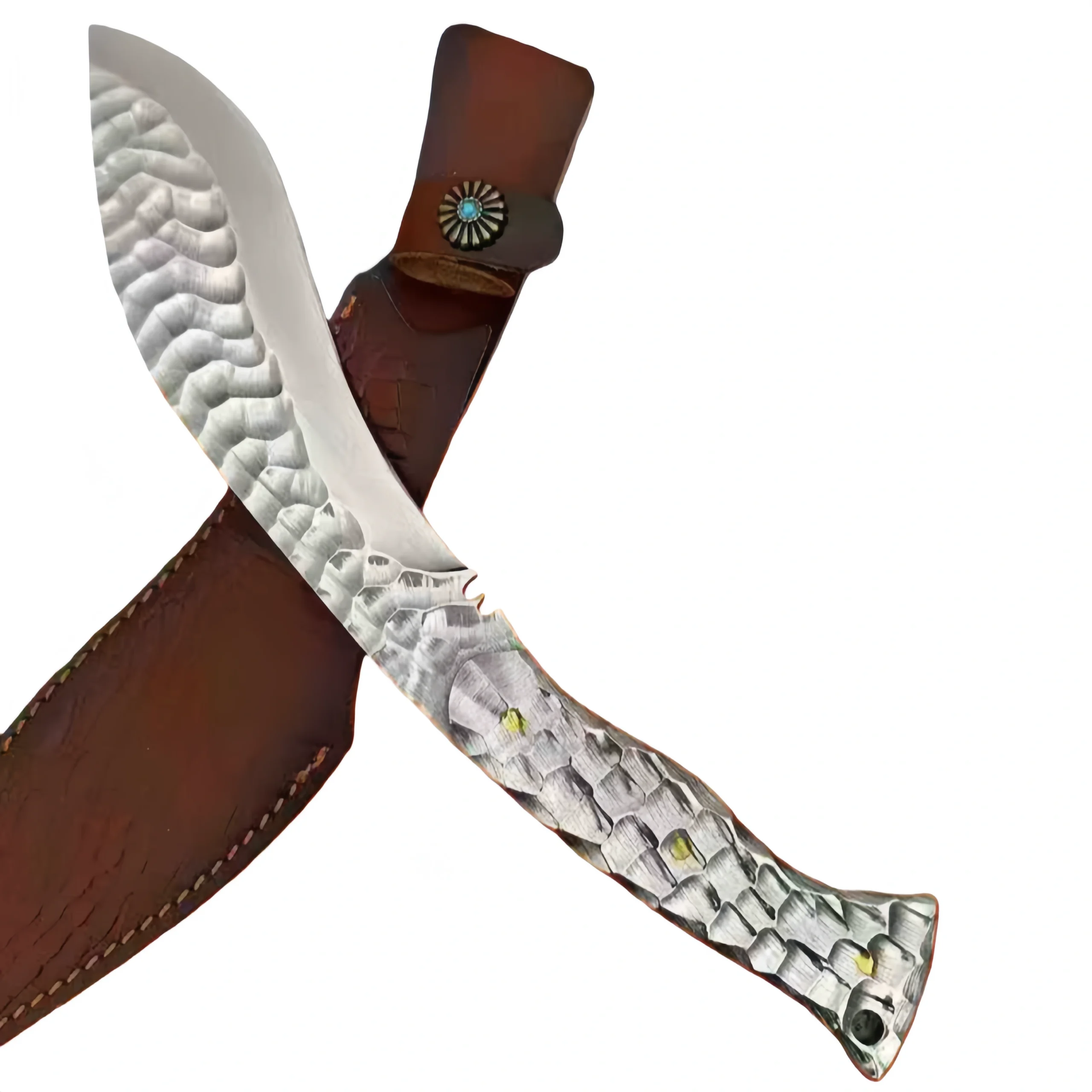 Handgefertigtes Kukri-Messer mit Steinmuster und Eisseele-Motiv, gefertigt aus kaltem Mond