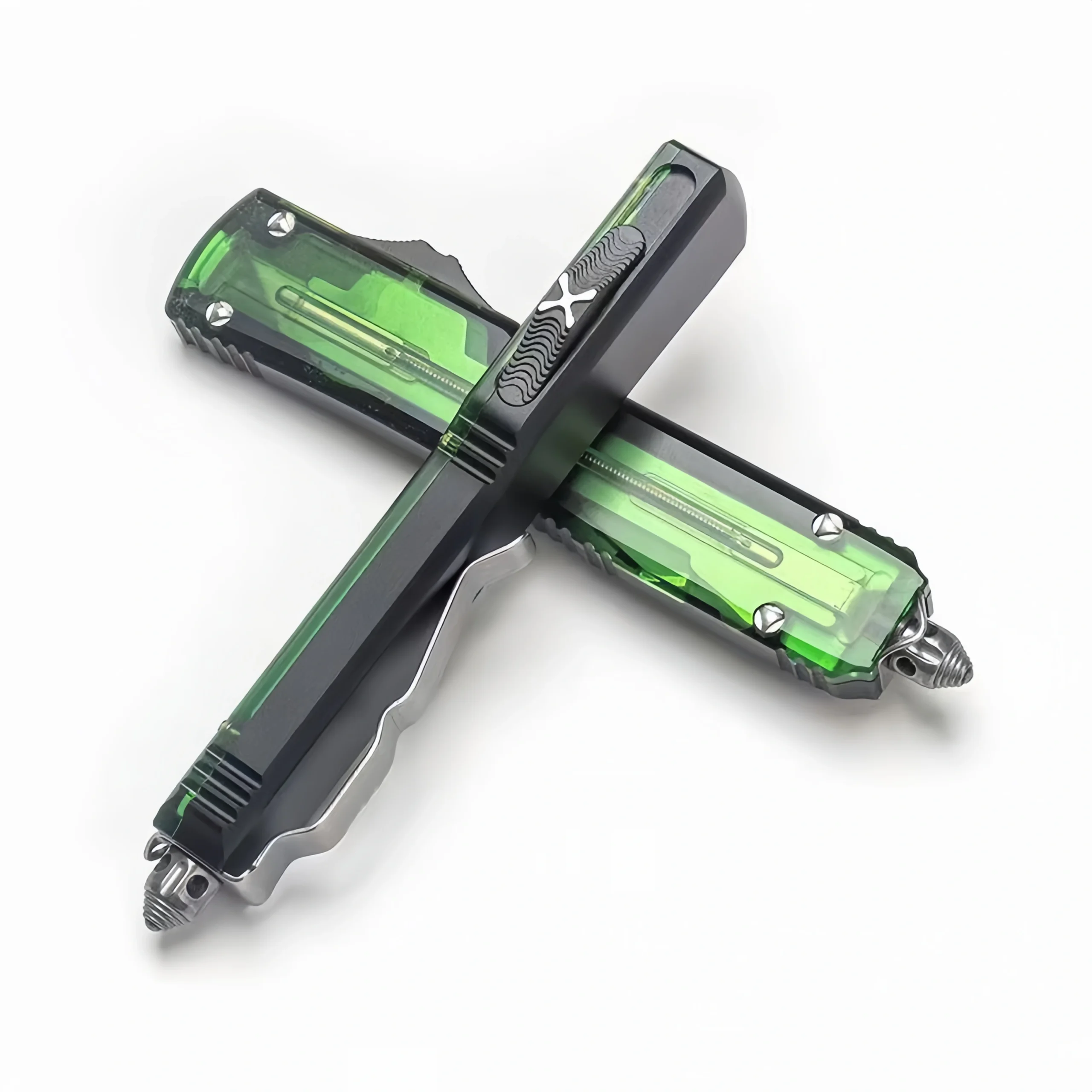 OTF-Messer mit grünem, durchscheinendem Griff